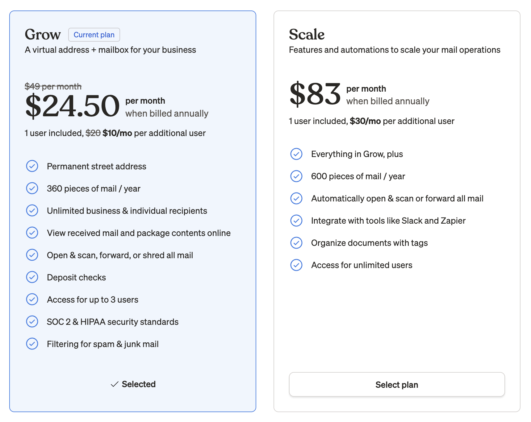 3、Stable虚拟地址和邮箱服务,每年294美元(年付,每月24.5美元)。用来接收信件,比如IRS的。收到之后,Stable可以帮你扫描,然后给你发Email。如果重要,再选择寄回国内(USPS费用另算)。