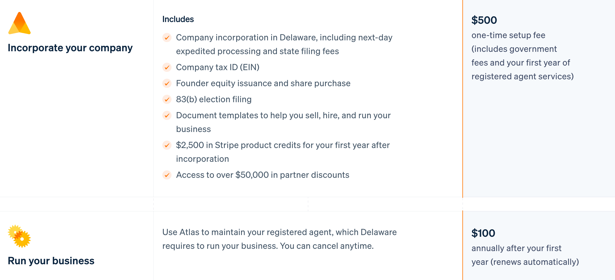 1、通过Stripe Atlas支付代理的费用,每年100美元。之前的500美元只是代理帮你把公司注册下来的一次性费用。